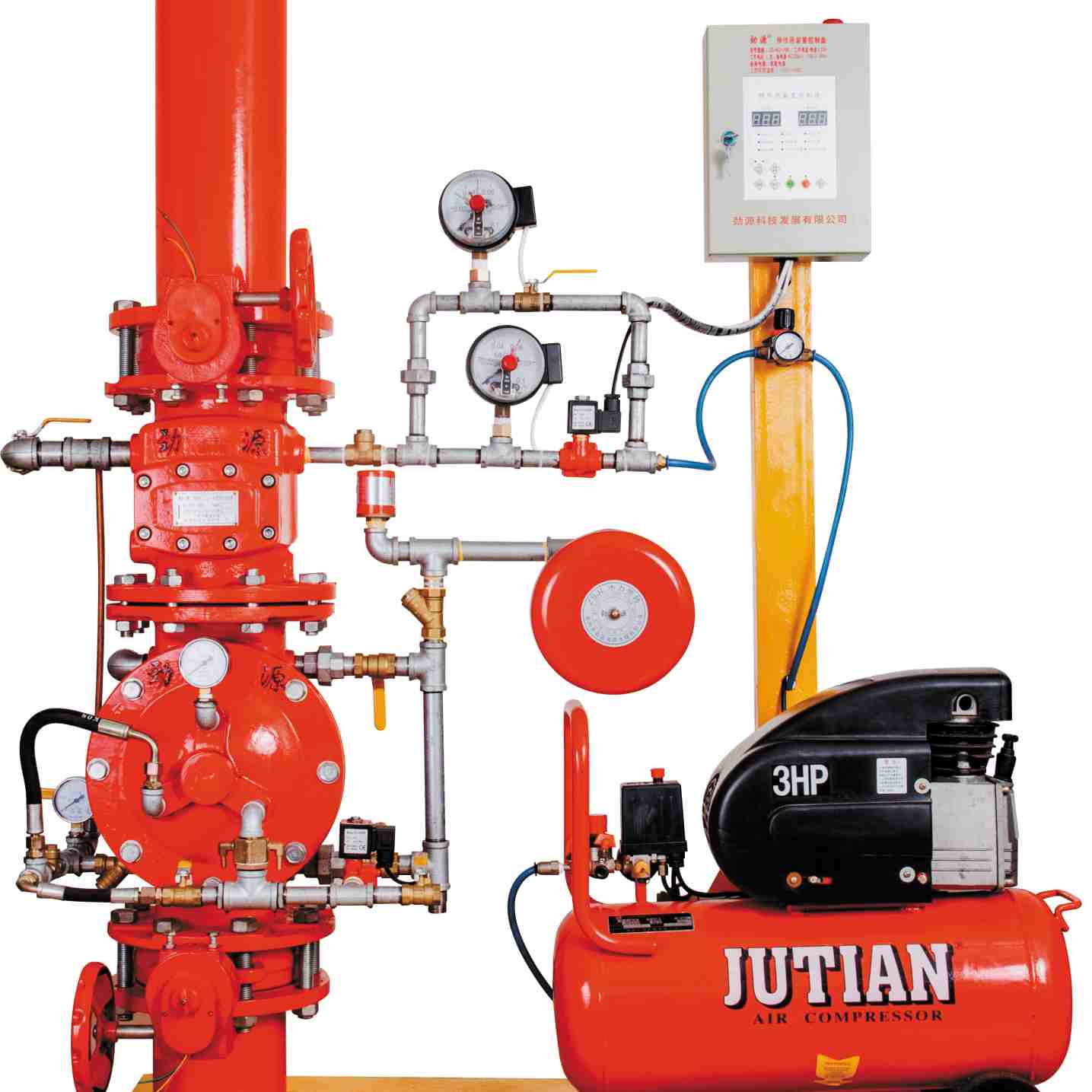 Em condições normais, ele permite que a água flua para a rede do sistema em uma direção e impede que a água retorne; em caso de incêndio, ele não apenas permite que a água flua em direção aos sprinklers para extinguir o fogo, mas também ativa automaticamente o alarme hidráulico e o pressostato para emitir alarmes sonoros e visuais.